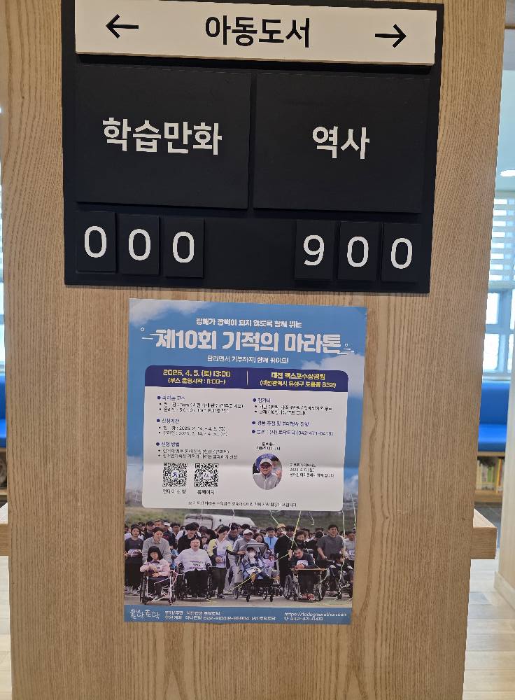 탄방길 작은도서관에서 제10회 기적의 마라톤을 응원합니다!